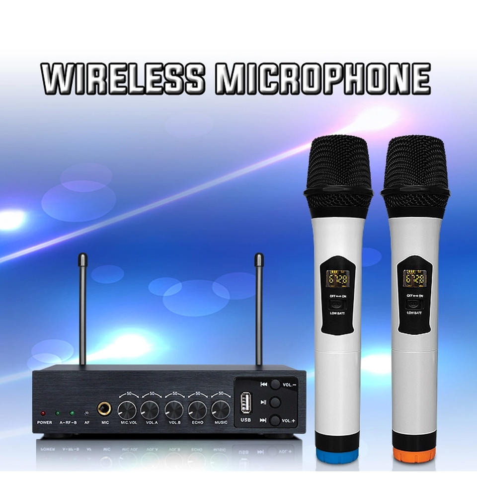Microphone de réverbération sans fil UHF en métal portable pour le divertissement familial KTV karaoké