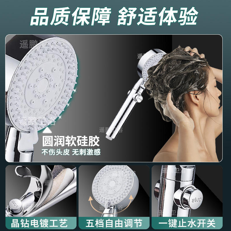 Pommeau de Douche Portable 5 Modes Haute Pression Jet Pluie et Massage Design Rond Moulé par Injection Grand Débit YP-279