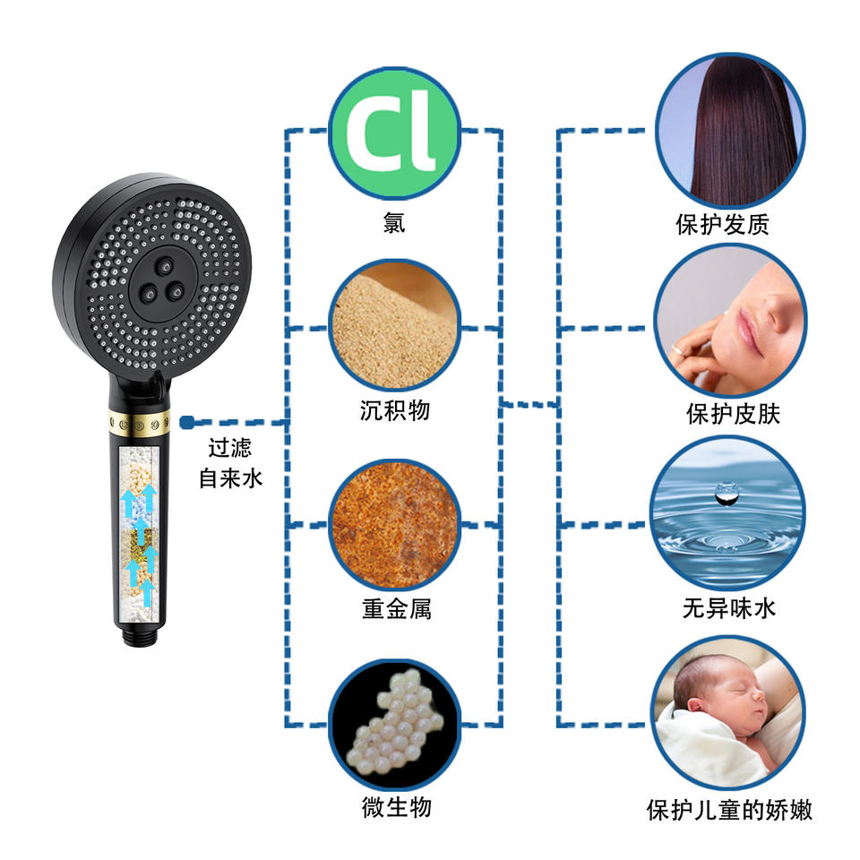 Pommeau de douche portable avec filtre remplaçable, jet de pluie réglable, rond, HS3690