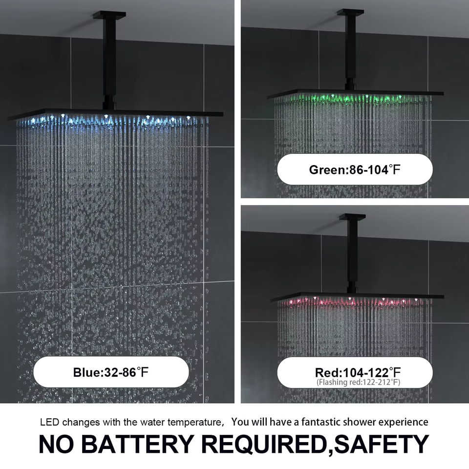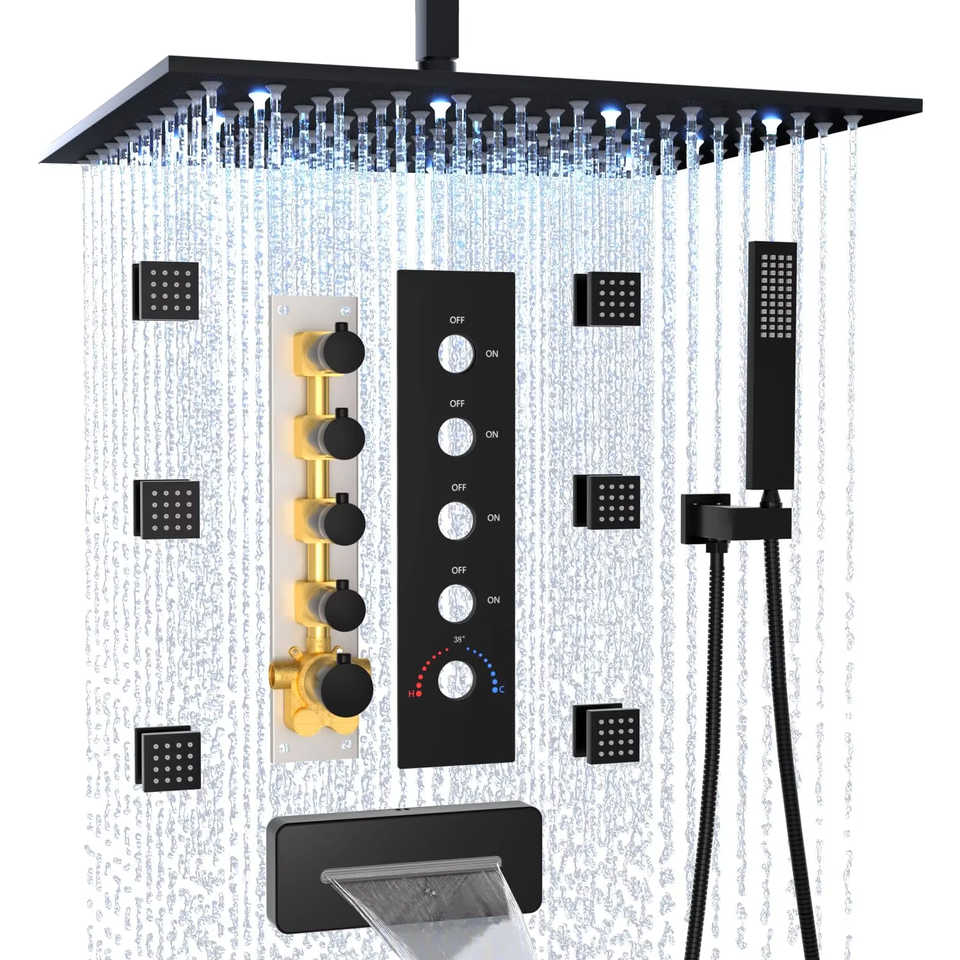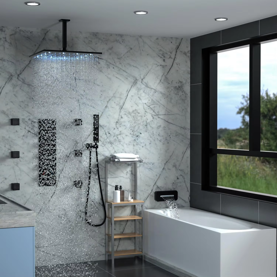 Ensemble de robinetterie de douche à jet portatif pour salle de bain, avec pommeau de douche pluie LED en nickel brossé