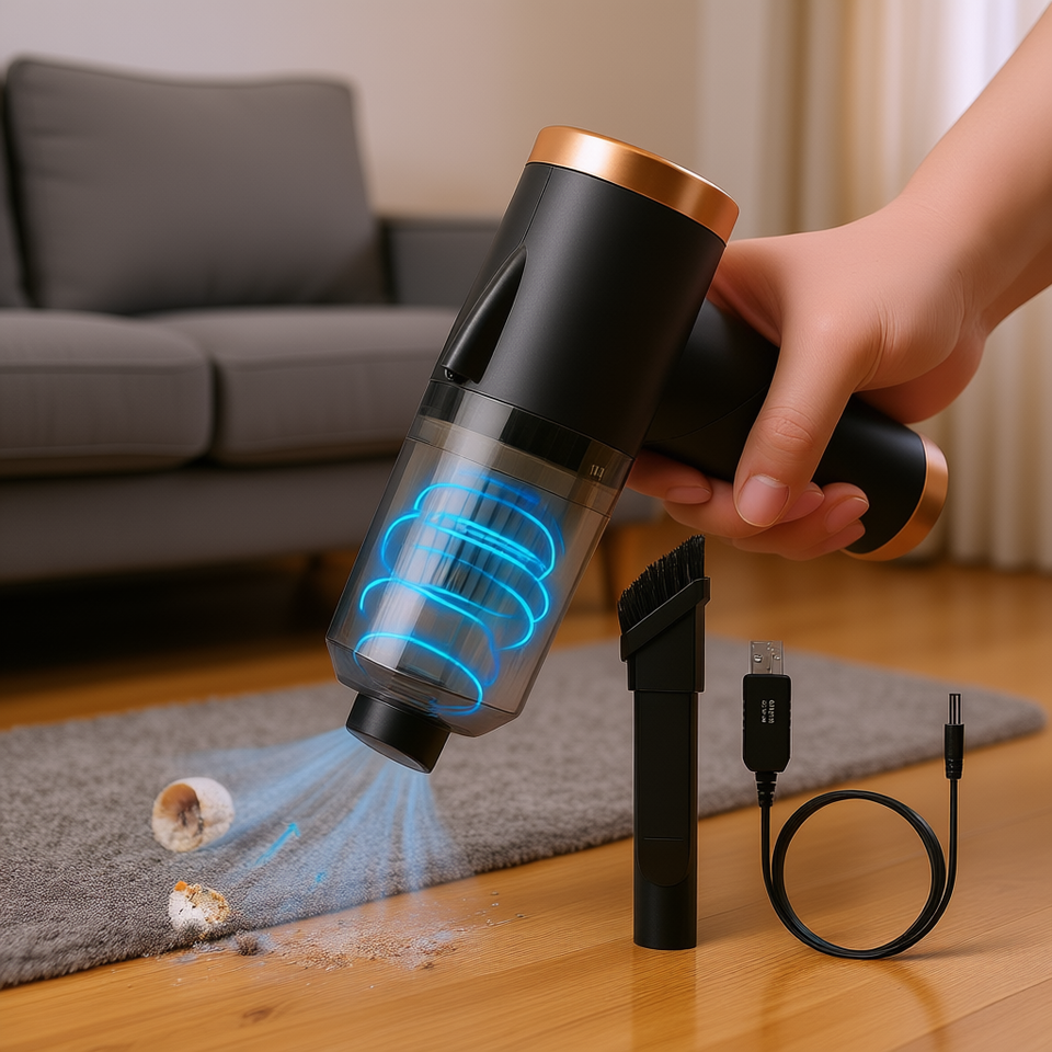 Aspirateur à main 120W rechargeable par USB, filtre lavable sans sac 0,3L, solution de nettoyage domestique