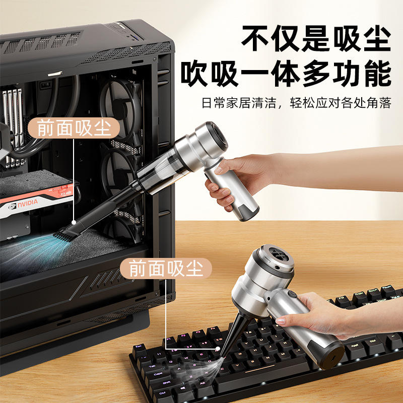 Aspirateur à main rechargeable avec moteur sans balais, argenté, portable, pour la maison et la voiture