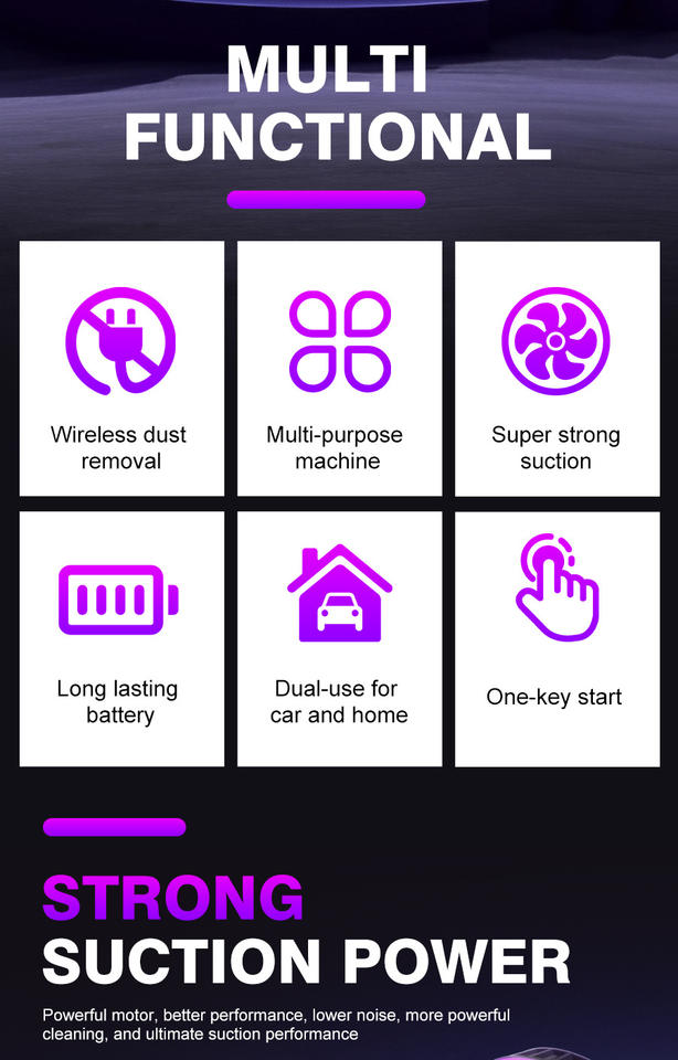 Aspirateur de voiture sans fil portatif 65W 2*2000mAh, aspiration et soufflage 2-en-1, aspirateur rechargeable portable pour la maison