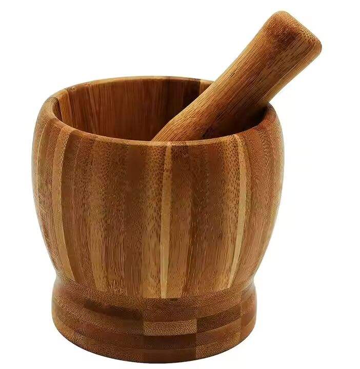Mortier et pilon en bois à main parfait pour broyeur d'herbes ail noix épices cuisine essentiel pilon en bois de taille personnalisée