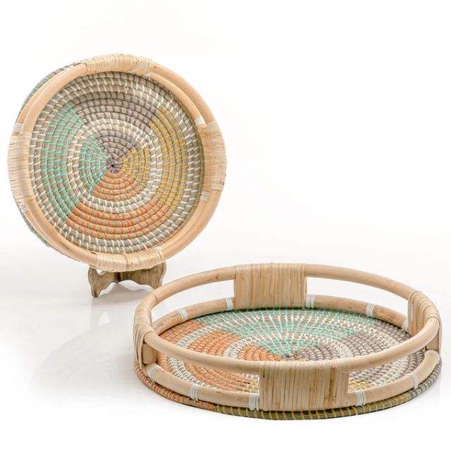 Seagrass mix rattan round serving tray set of 2 sizeProduct name
