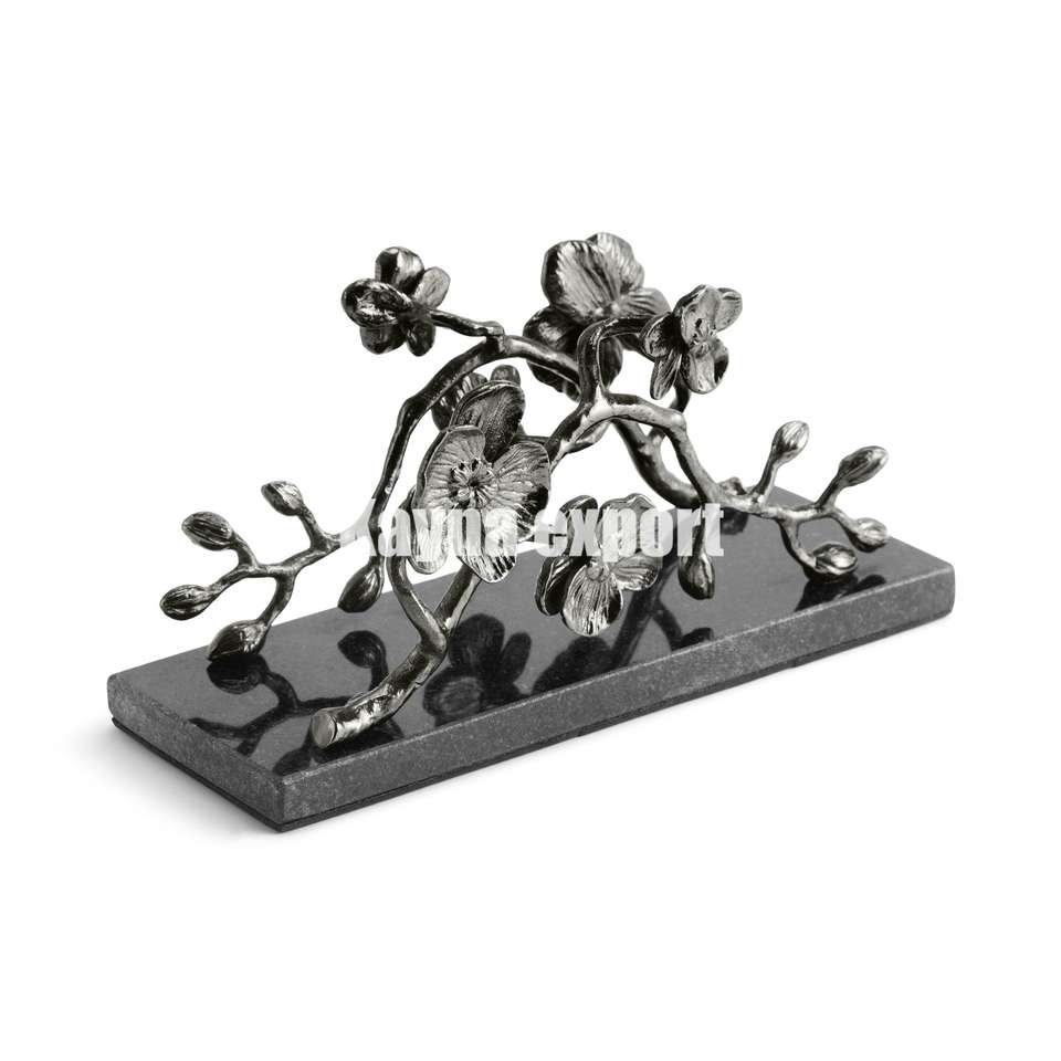 Artisanat belle feuille de laiton design décoration de table base en marbre noir avec porte-mouchoirs belle branche or et noir