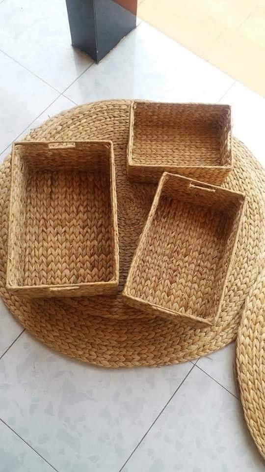Paniers et plateaux de rangement durables en jacinthe d'eau Artisanat du Vietnam