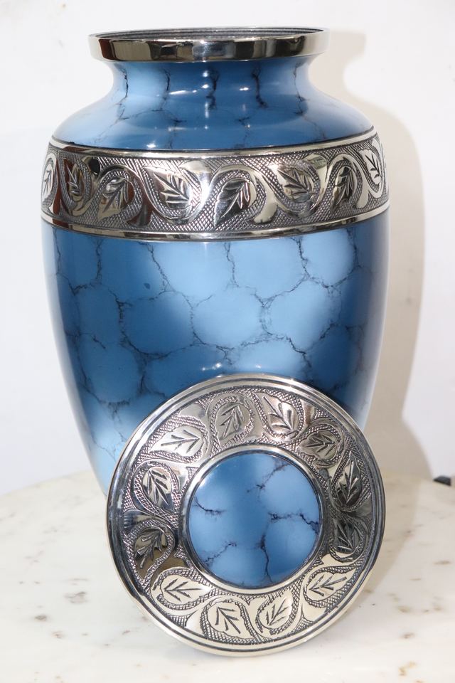 Artisanat, zircon bleu feu, urne funéraire artisanale pour animaux de compagnie adultes, cendres humaines, grande taille, gravée, peinte, écologique, durable