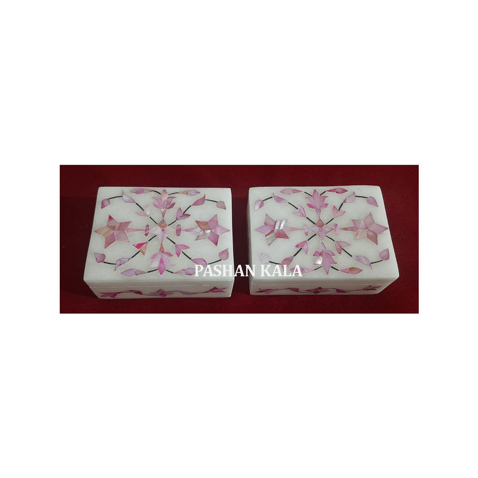 Articles d'artisanat produit haut de gamme fait à la main marbre blanc rose nacre incrustation travail bijoux boîtes de rangement pour cadeau