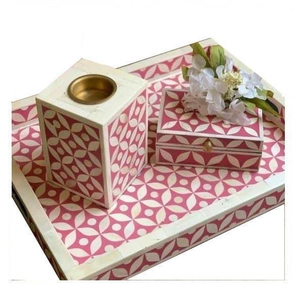 Ensemble de brûleurs d'encens de vadrouille artisanale avec plateau en incrustation de nacre Couleur rose Diffuseur de cadeaux du Ramadan du fabricant Dukhoon