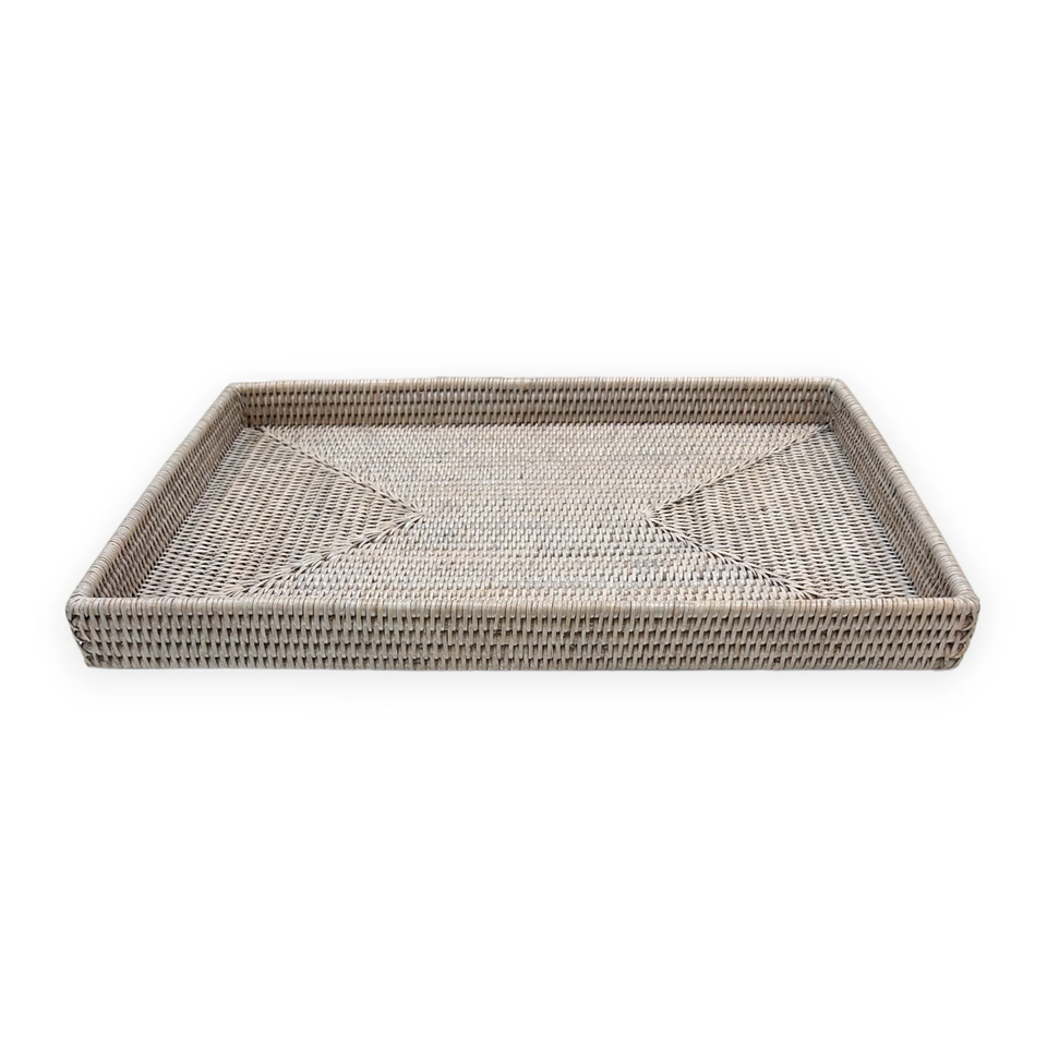 Plateau rectangulaire en rotin artisanal pour le bureau, plateau de service pour café, design attrayant, prix de gros
