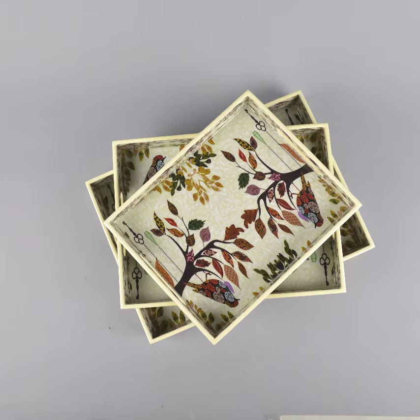Artisanat Rectangulaire Forme Os Incrustation Plateau Maison Plateau Décoratif pour Table Basse Motif Unique Essayez Os Artisanat