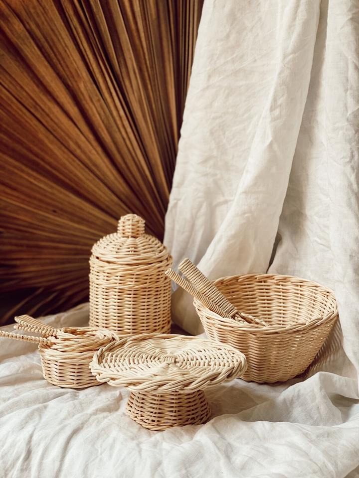 Artisanat Osier Rotin Cuisine Ensemble Bébé Jouets Bébé Enfants Chambre Jouets Pour Enfants En Gros Rotin Jouets Pour Enfants Cadeaux D'anniversaire