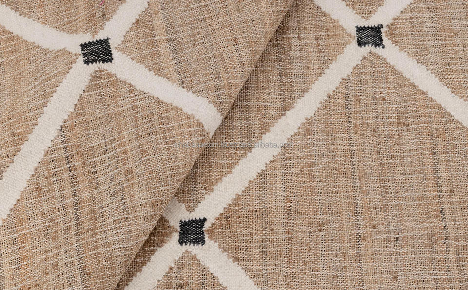 Handloom Jute Kilim Tapis Écologique En Fiber Naturelle Tapis Géométrique Tribal Tapis De Sol Lavable Réversible pour La Maison En Gros