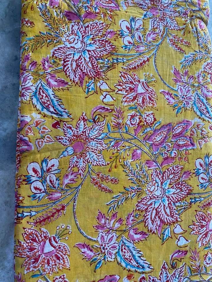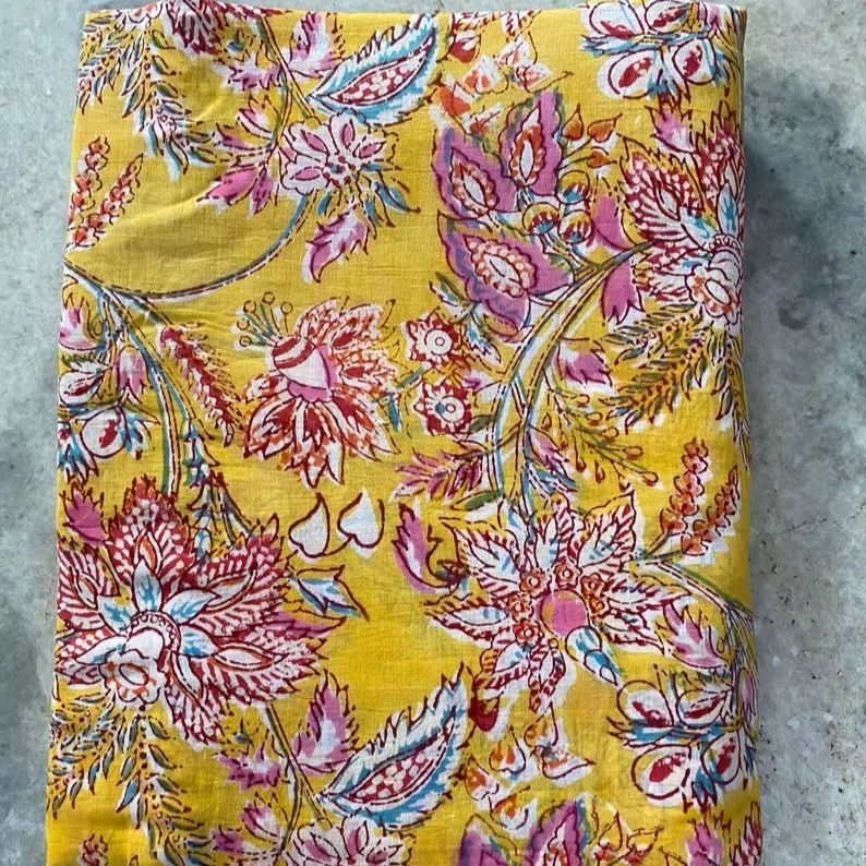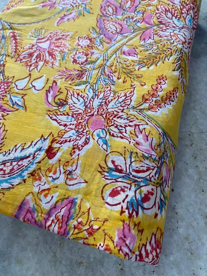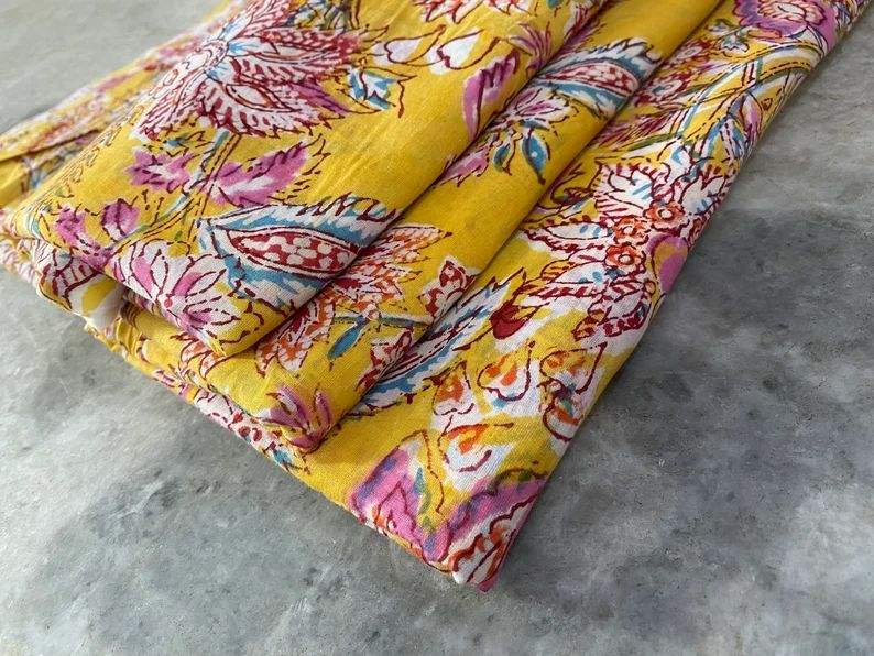Handmade 100% Cotton Nomex Fabric Dress Material Lightweight Beautiful Floral Print Summer Women's Robe Knitted Block Printed