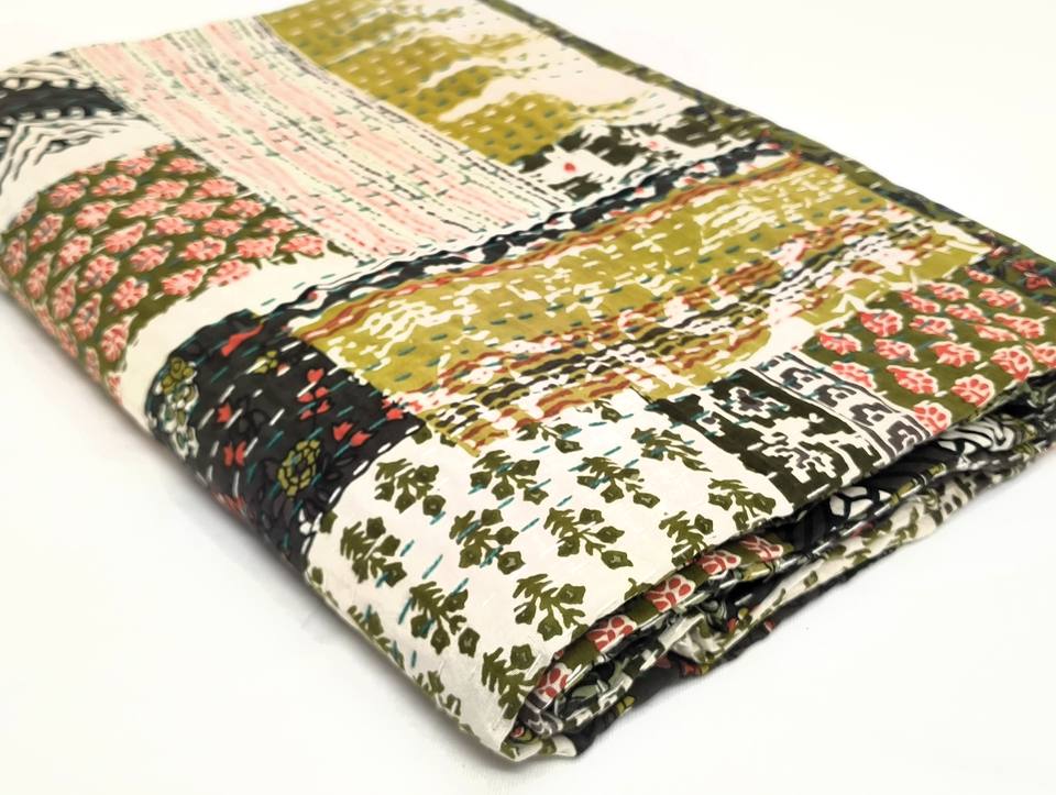 Vieille courtepointe vintage:Courtepointe kantha fait main