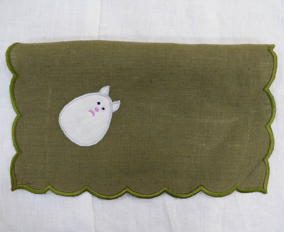 Serviette en lin 100% lin fait main avec broderie et bord festonné