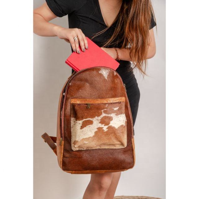 Fait à la main 100% véritable peau de vache cheveux qualité supérieure antivol sac à dos pour ordinateur portable Style bohème Portable pour collège voyage