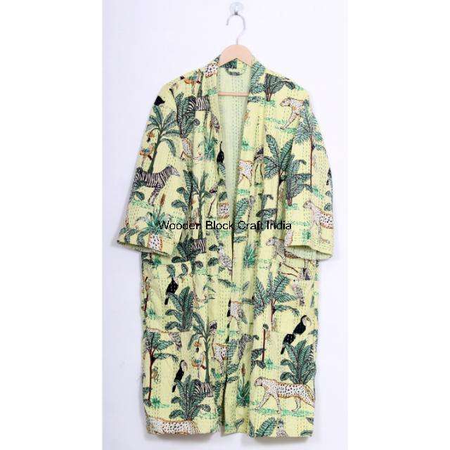 Veste Kantha 100% coton pur faite à la main pour femmes, mode vintage de festival, kimono court matelassé, vêtements de nuit pour l'été
