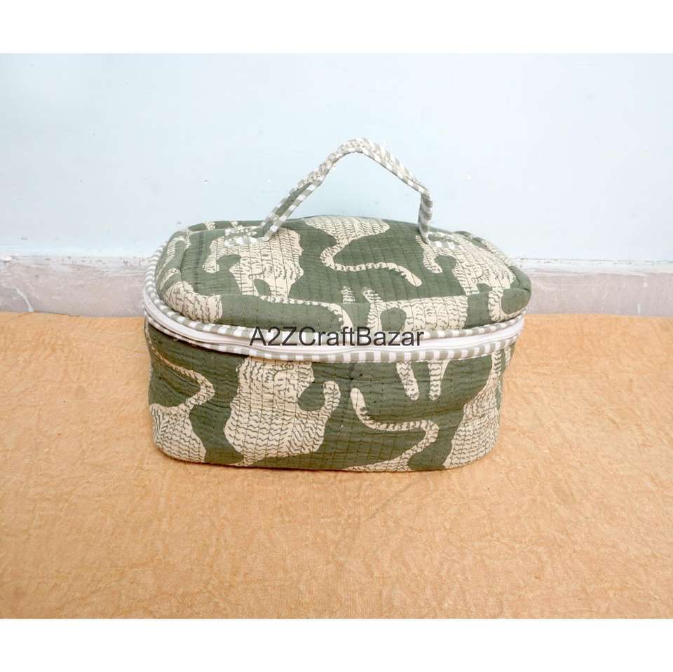 Pochette matelassée à poignée en coton 100% pur, faite à la main, écologique, durable, élégante, avec fermeture éclair, organiseur de cosmétiques, petite trousse de voyage