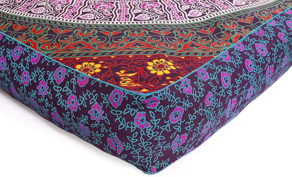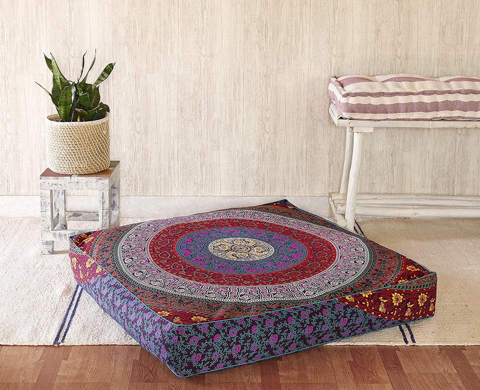 Housse de coussin carrée faite à la main 100% coton pur, imprimé floral bohème vintage, écologique et lavable