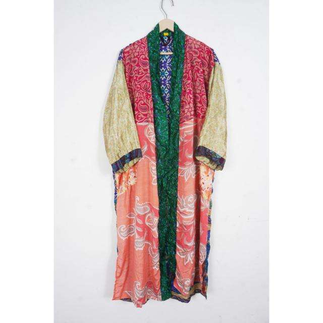 Robe longue en soie 100% faite à la main, col en V, fermeture à cordon, manches trois-quarts, respirante, douce, pour femmes