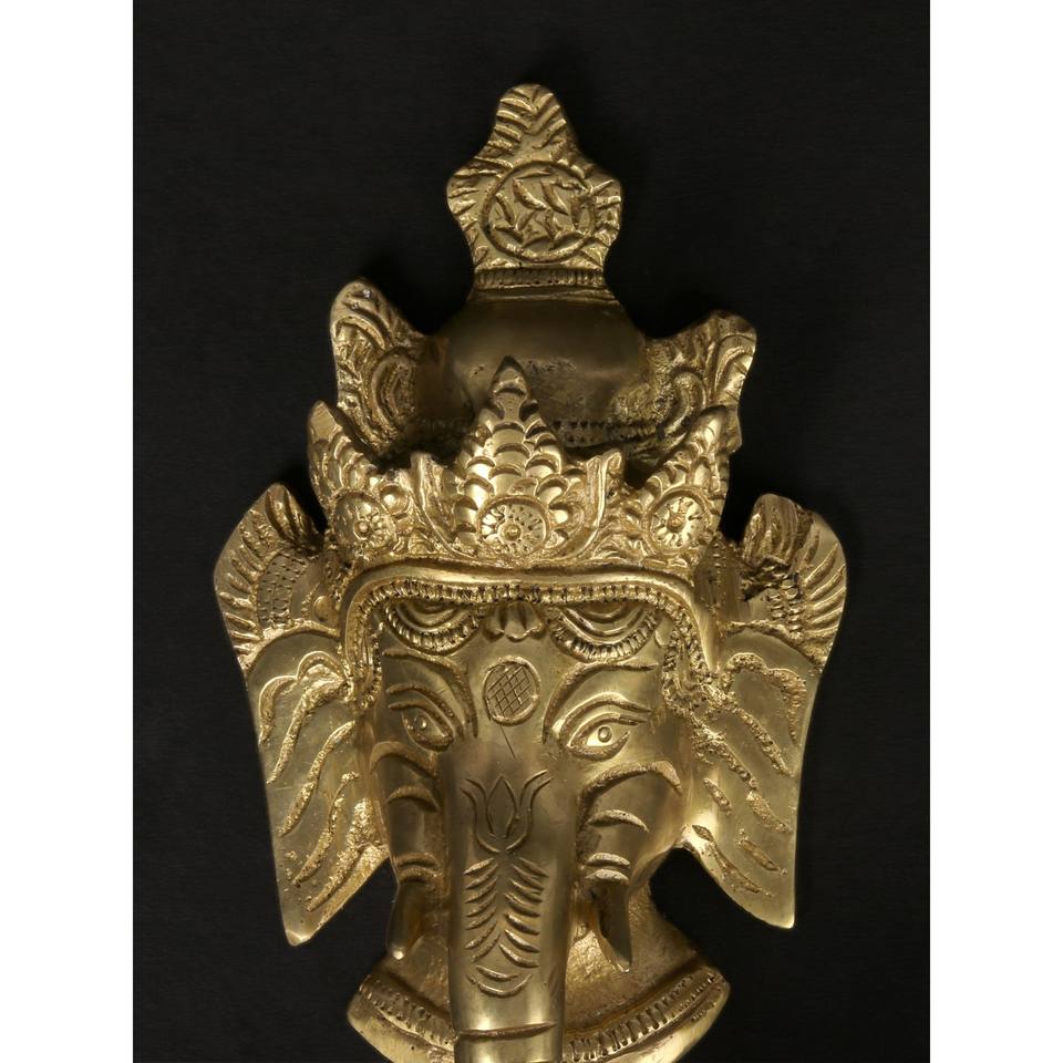 Masque mural Lord Ganesha de 11 pouces fait à la main avec diya en laiton et article de cadeau de cloche fabriqué en Inde