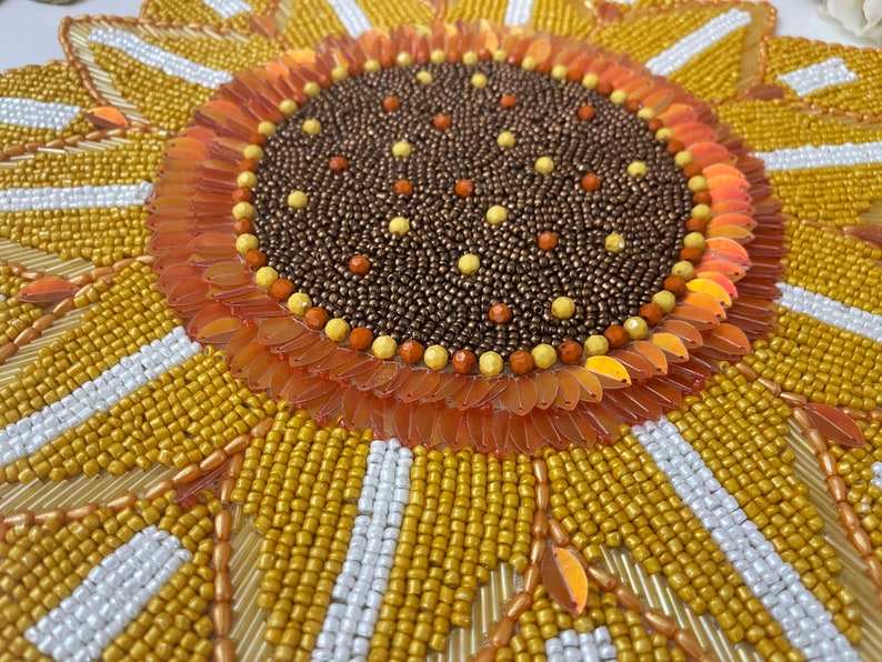 Napperons de tournesol perlés faits à la main de 14 pouces tapis de Table rond décoratif tricoté floral pour les fêtes de mariage