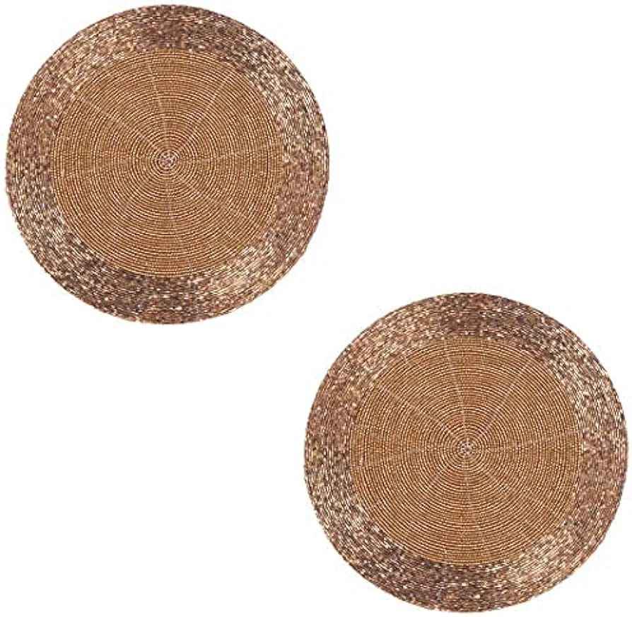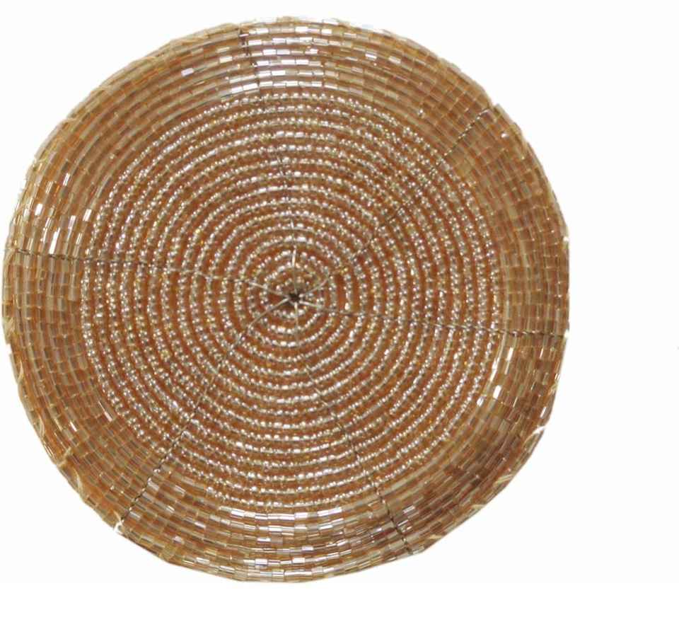 Napperon de table en verre rond fait à la main de 14 pouces perles blanches perles argentées et dorées élégantes et élégantes