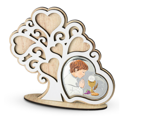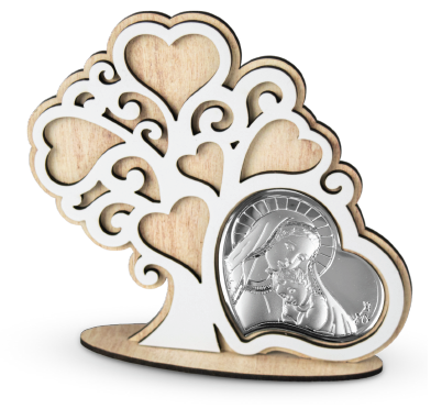 Fait à la main 15.5x15 cm icône sacrée bois arbre de vie Plaque religieuse maternité Design plaque d'argent métal Souvenir estampillé à la main