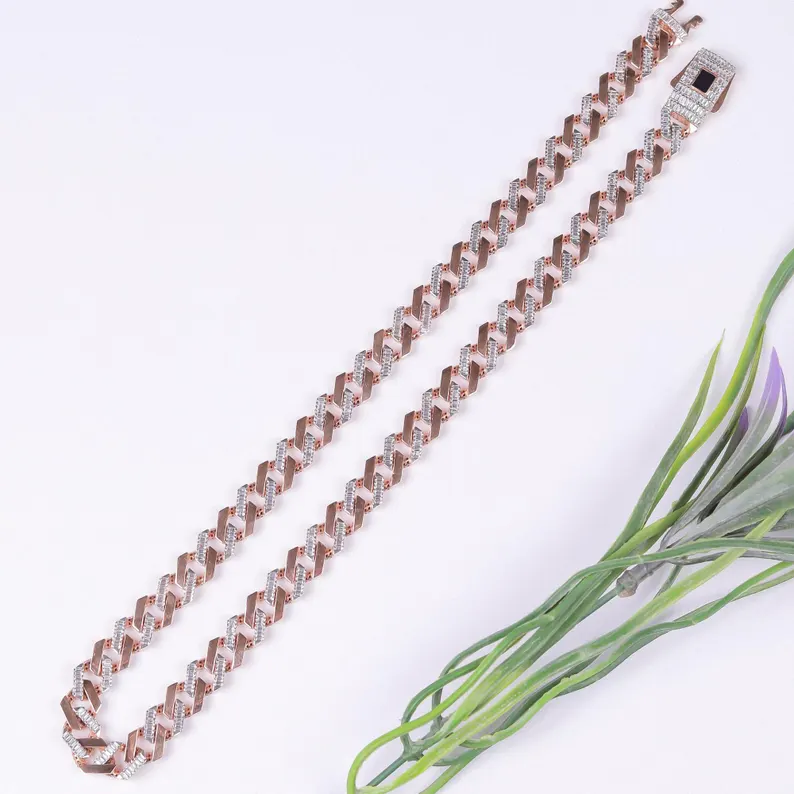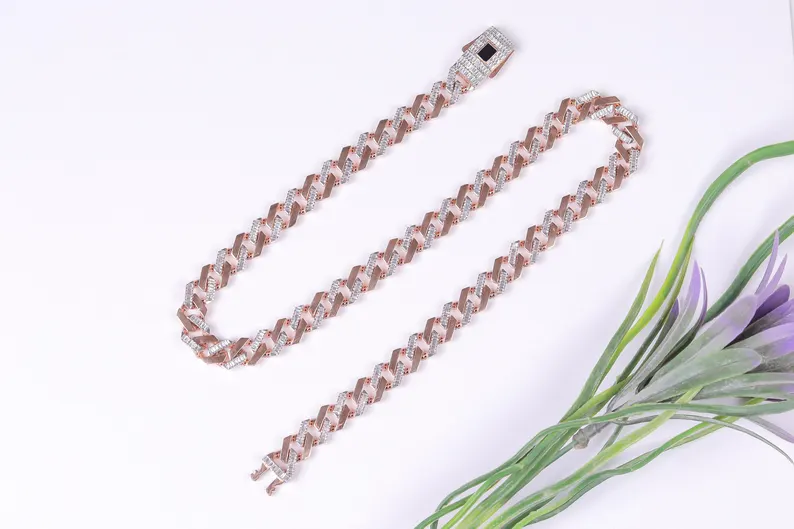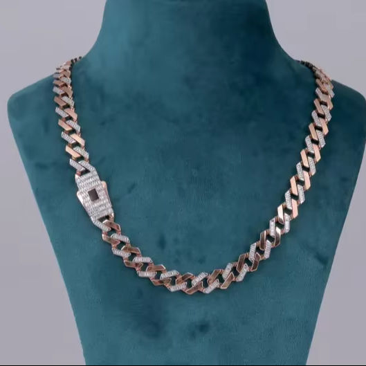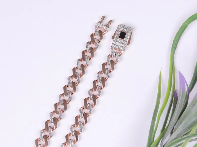 Chaîne cubaine Hip Hop en or rose 18 carats faite à la main Collier vintage en diamant baguette pour homme avec certificat IGI Style Miami Or 14 carats