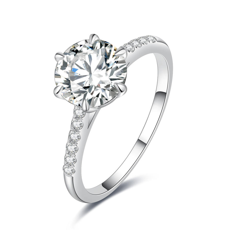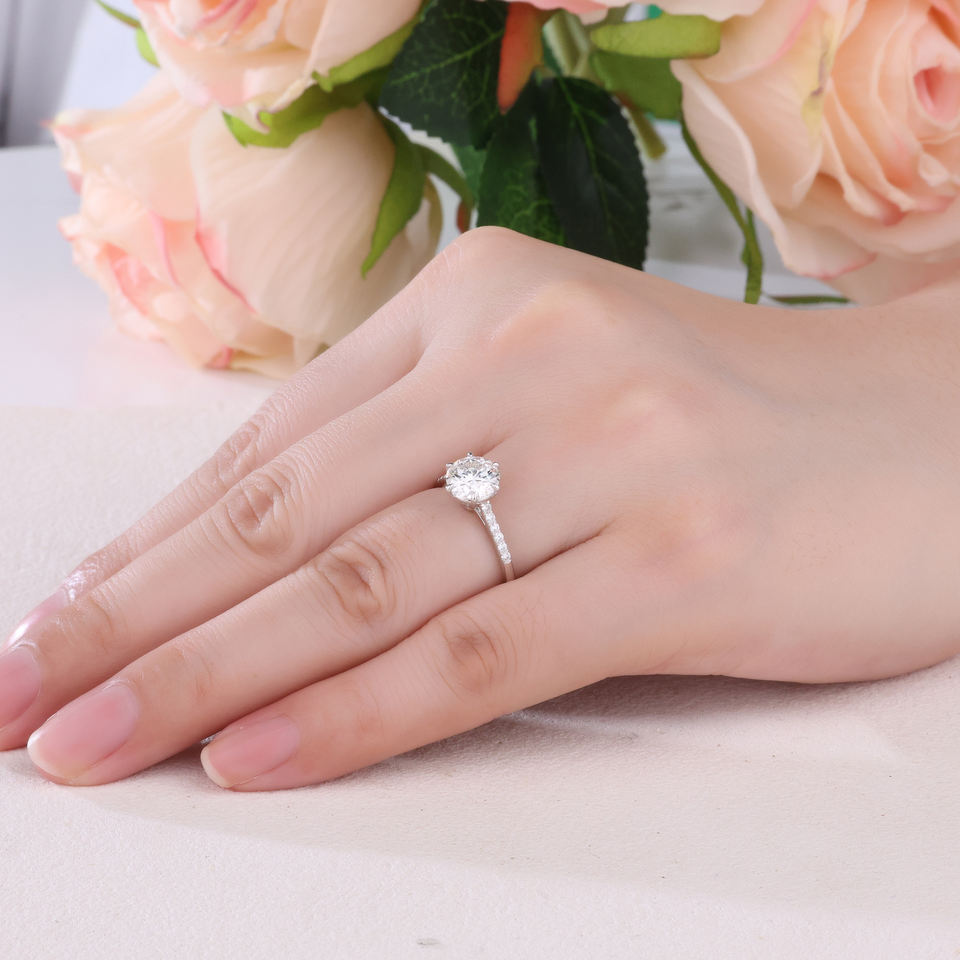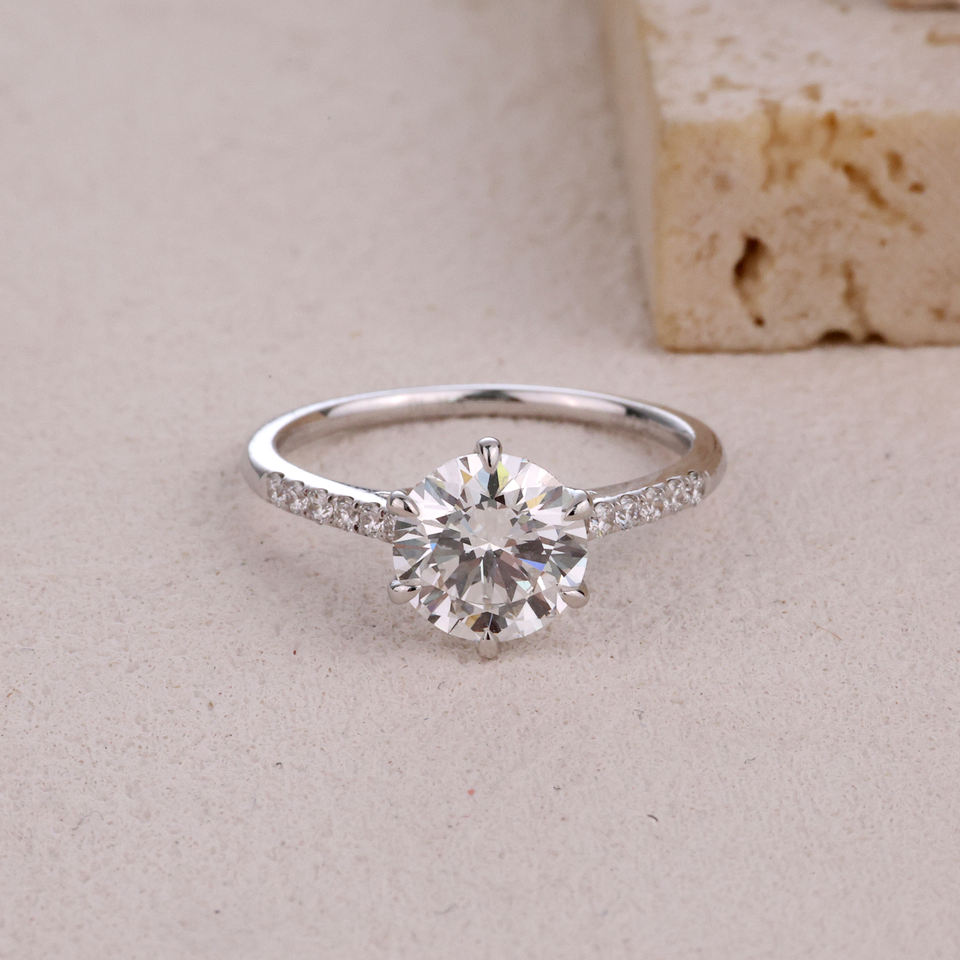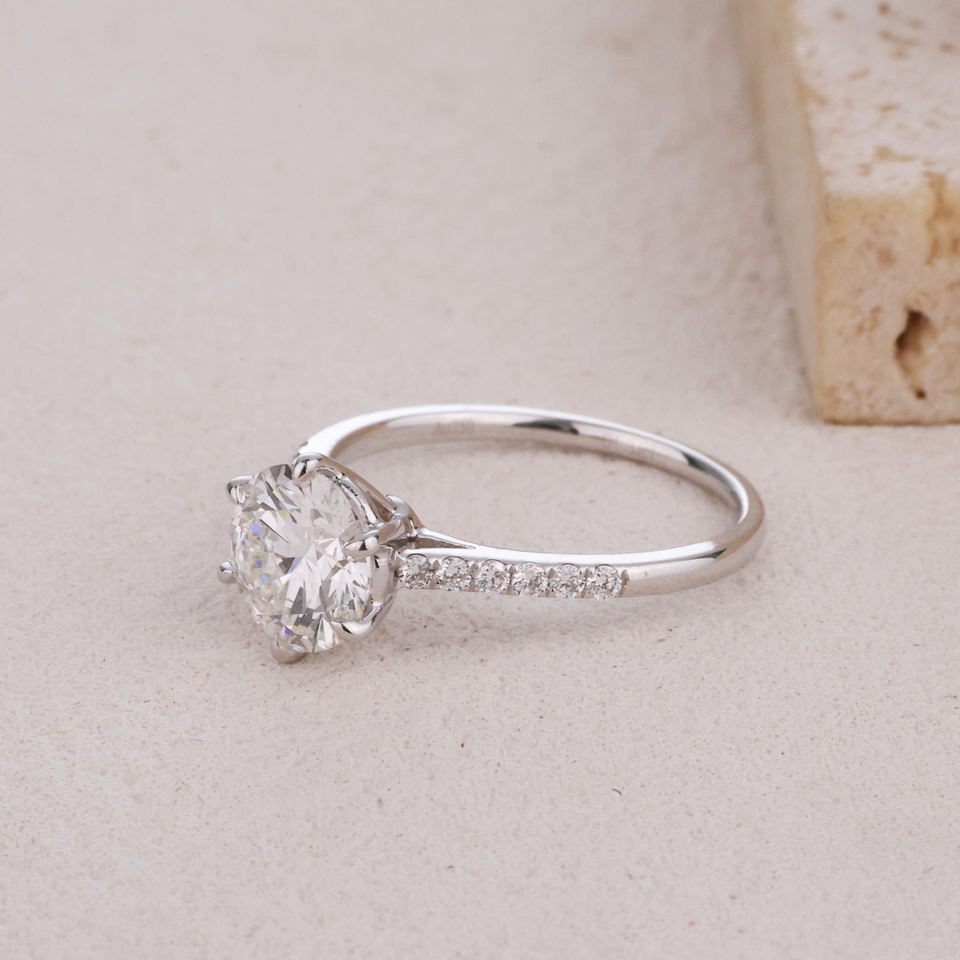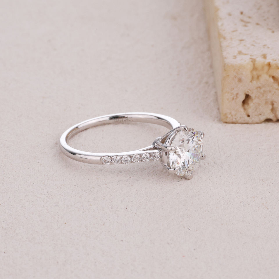 Bague de fiançailles classique en or blanc massif 18 carats faite à la main pour diamants cultivés en laboratoire bijoux fins de haute qualité anniversaire de fête de mariage