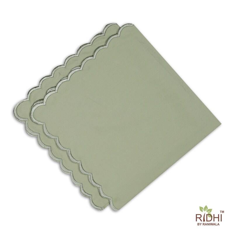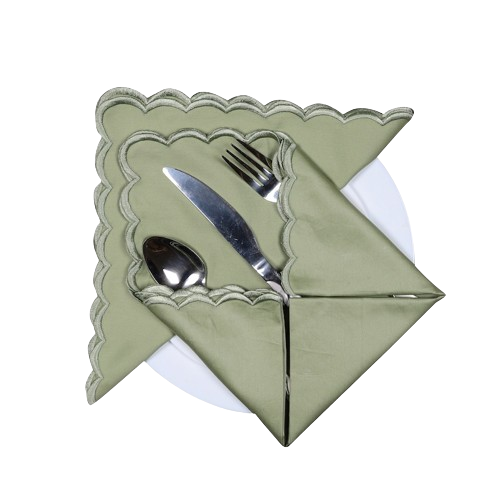 Serviettes en tissu de coton vert de 18x18 pouces faites à la main broderie de conception de pétoncle carré pour la pendaison de crémaillère Cocktail d'anniversaire à la maison