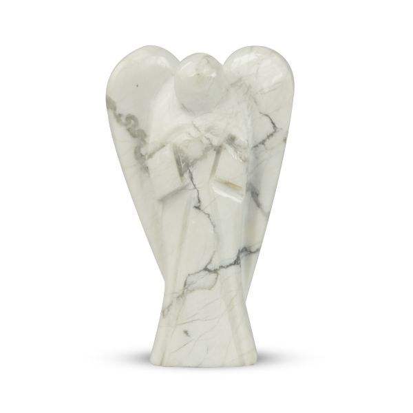Figurine d'ange en agate de 2 pouces faite à la main, en pierre naturelle howlite, style Feng Shui, pierre précieuse de guérison de poche, cadeau de vacances
