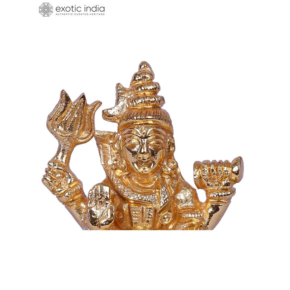 Fait à la main 3 pouces petit Shiva assis en laiton Sculpture carré plaqué or article fabriqué en Inde