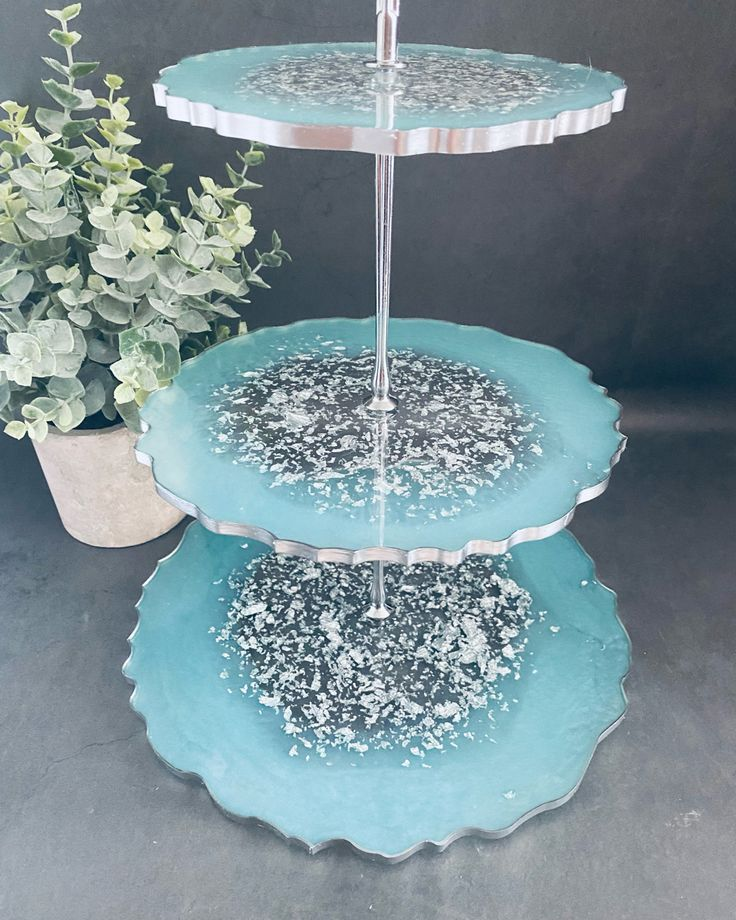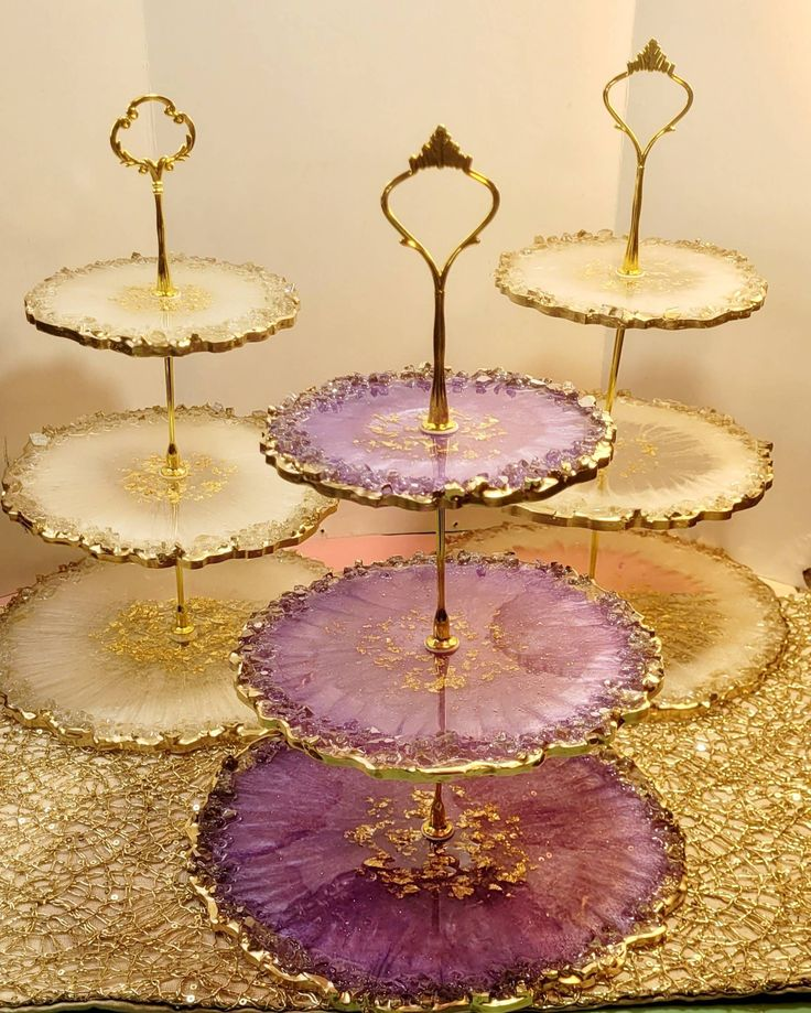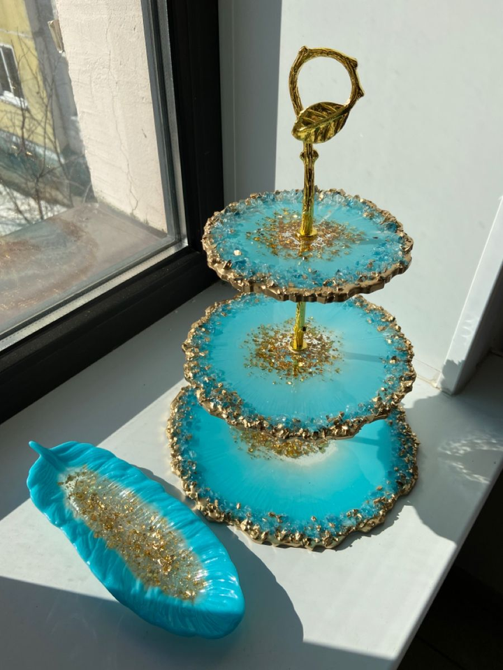 Support à gâteaux 3 niveaux en résine fait main, présentoir à cupcakes et desserts, artisanat moderne de luxe écologique pour la maison et l'Inde