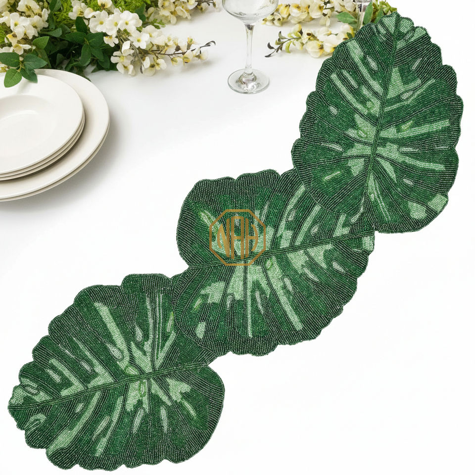 Chemin de table en verre perlé brodé fait à la main de 36 pouces pour la décoration de mariage et de fête