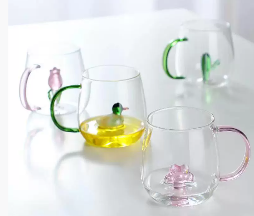 Gobelet réutilisable en verre borosilicate de haute qualité, avec poignée décorative, motif animal 3D fait main, design champêtre, 10-13 oz, garde les boissons au frais