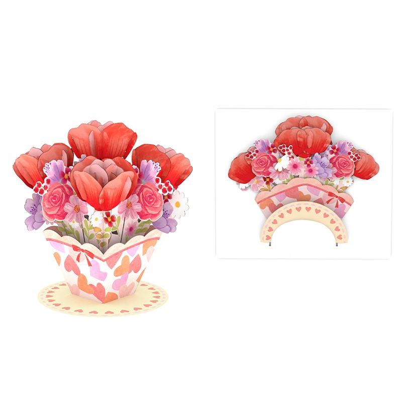 Carte de vœux 3D pop-up artisanale en forme de fleur, fabriquée au Vietnam, pour la fête des mères, les cadeaux d'affaires et les occasions spéciales.