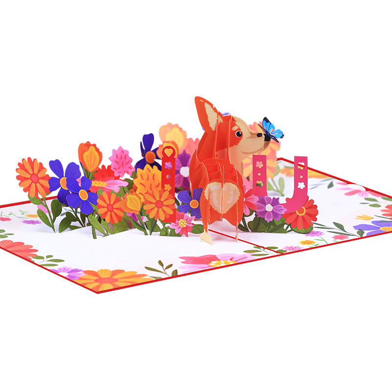 Carte de vœux pour l'anniversaire de la Saint-Valentin en papier pop-up 3D fait à la main impression personnalisée d'estampage d'or pour cadeaux d'affaires créatifs pour chiens de compagnie