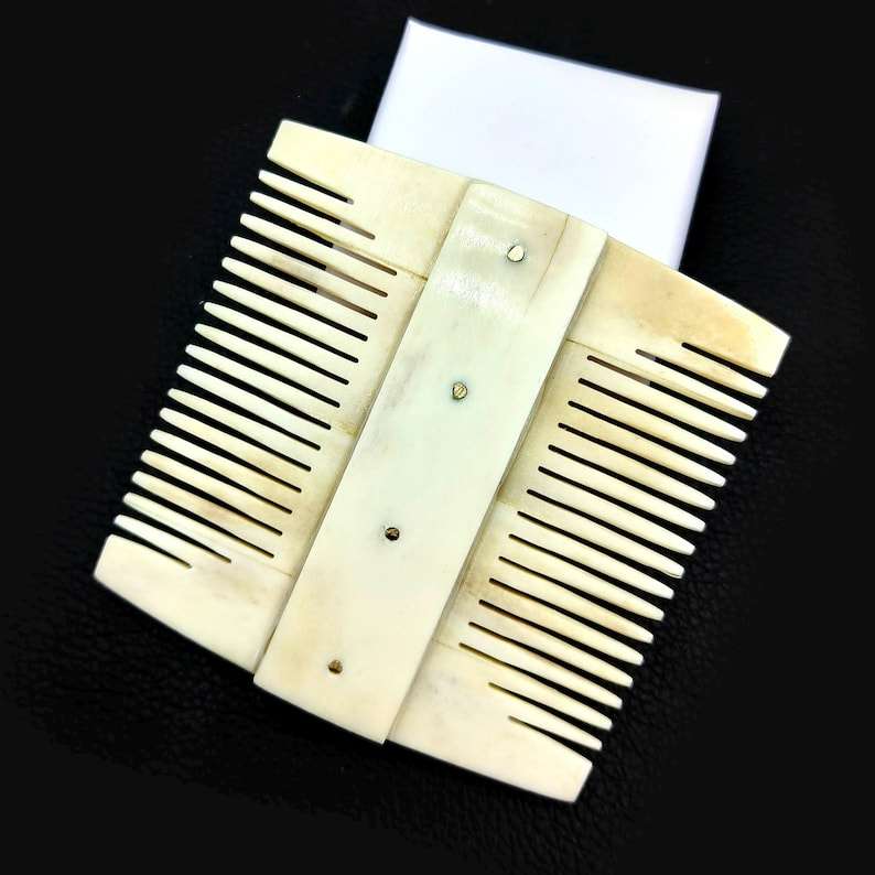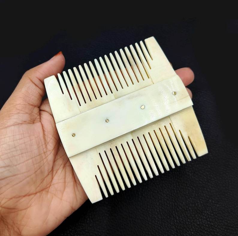 Peigne à barbe artisanal de 4 pouces en os de buffle naturel - Peigne de toilettage à dents larges pour hommes, peigne de luxe pour barbe et cheveux style Viking
