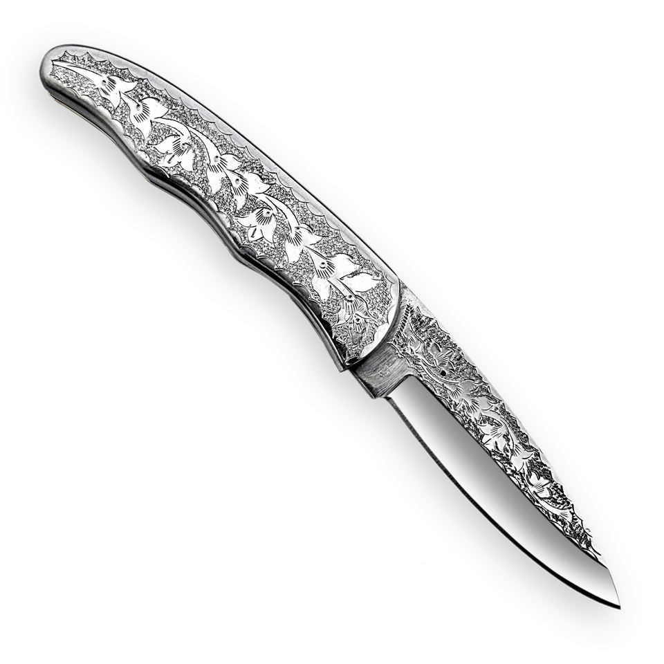 Handmade 440C Stainless Steel Folding Knife with Fine Leather Sheath Horn Handle Engraved Design Trending Viral Product Hot Sale