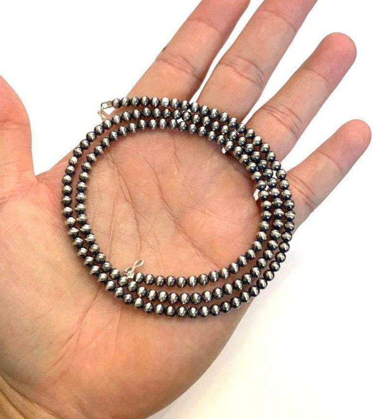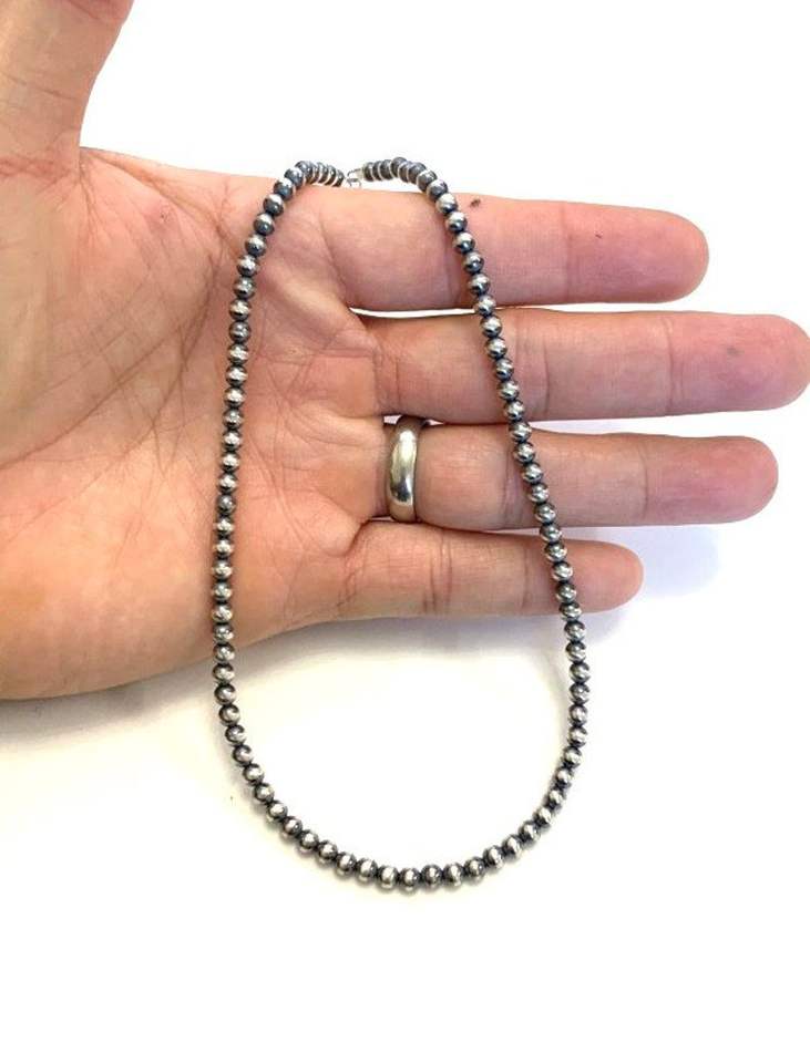 Handmade 4mm Navajo Pearl Sterling Silver Beads Necklace 18 Inch Long Elegant Jewelry Gift For Women