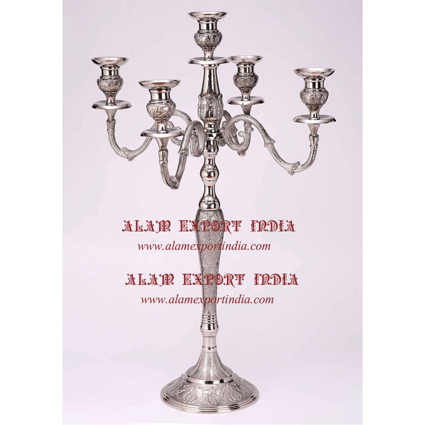 Handmade 5-Arm Wedding Table Decorative Centerpiece Nickel Plated Aluminum Casted Metal Candelabra Candle Holder Wholesale Price