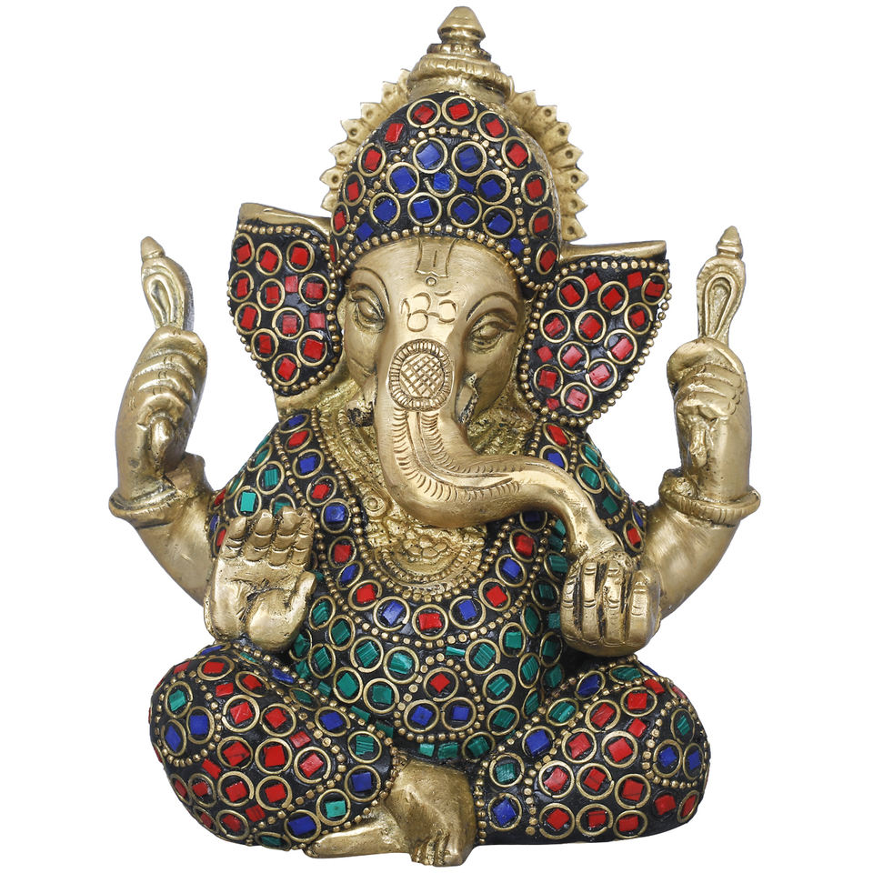 Statue de Ganesha en laiton de 5 pouces faite à la main Sculpture de bénédiction indienne pour cadeaux