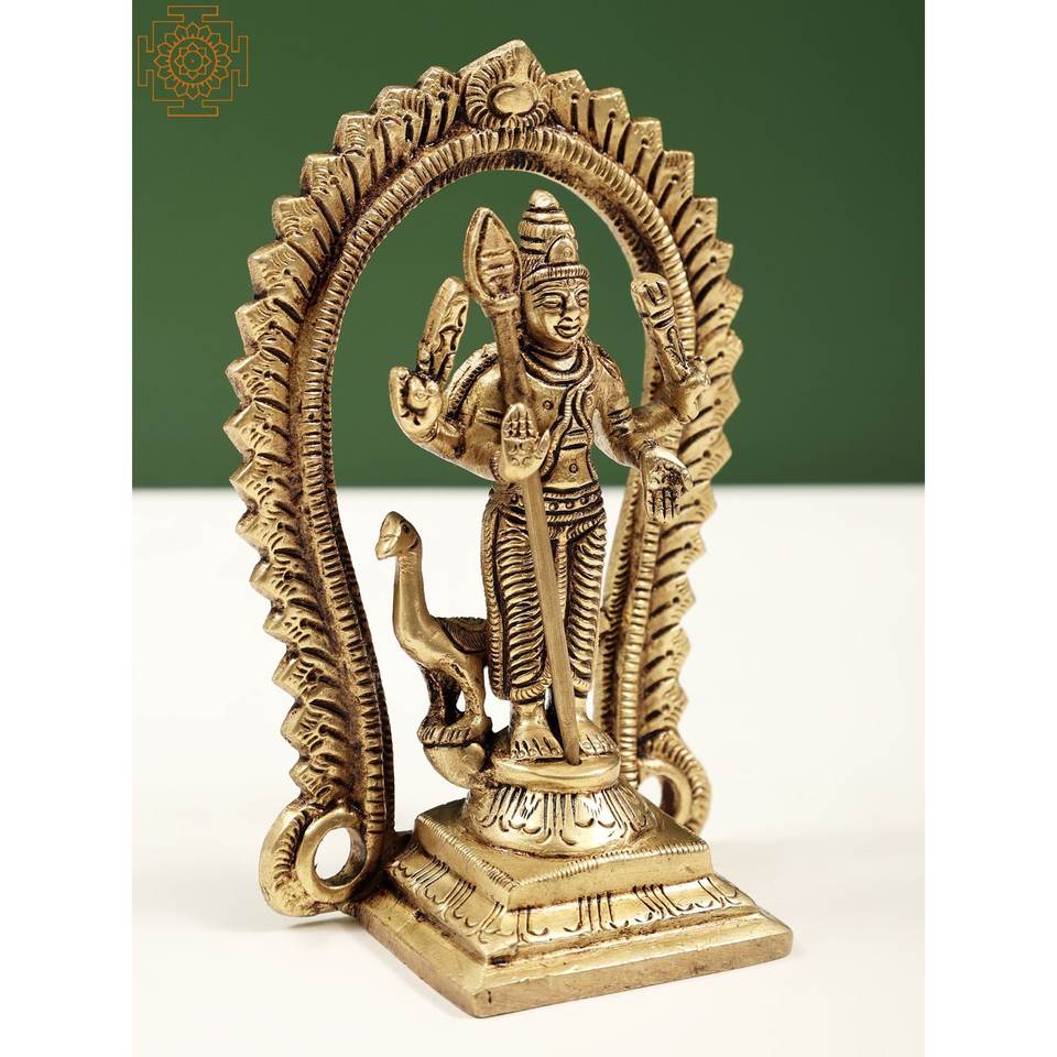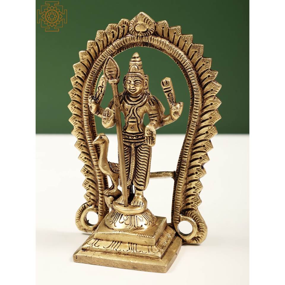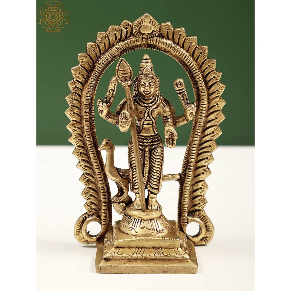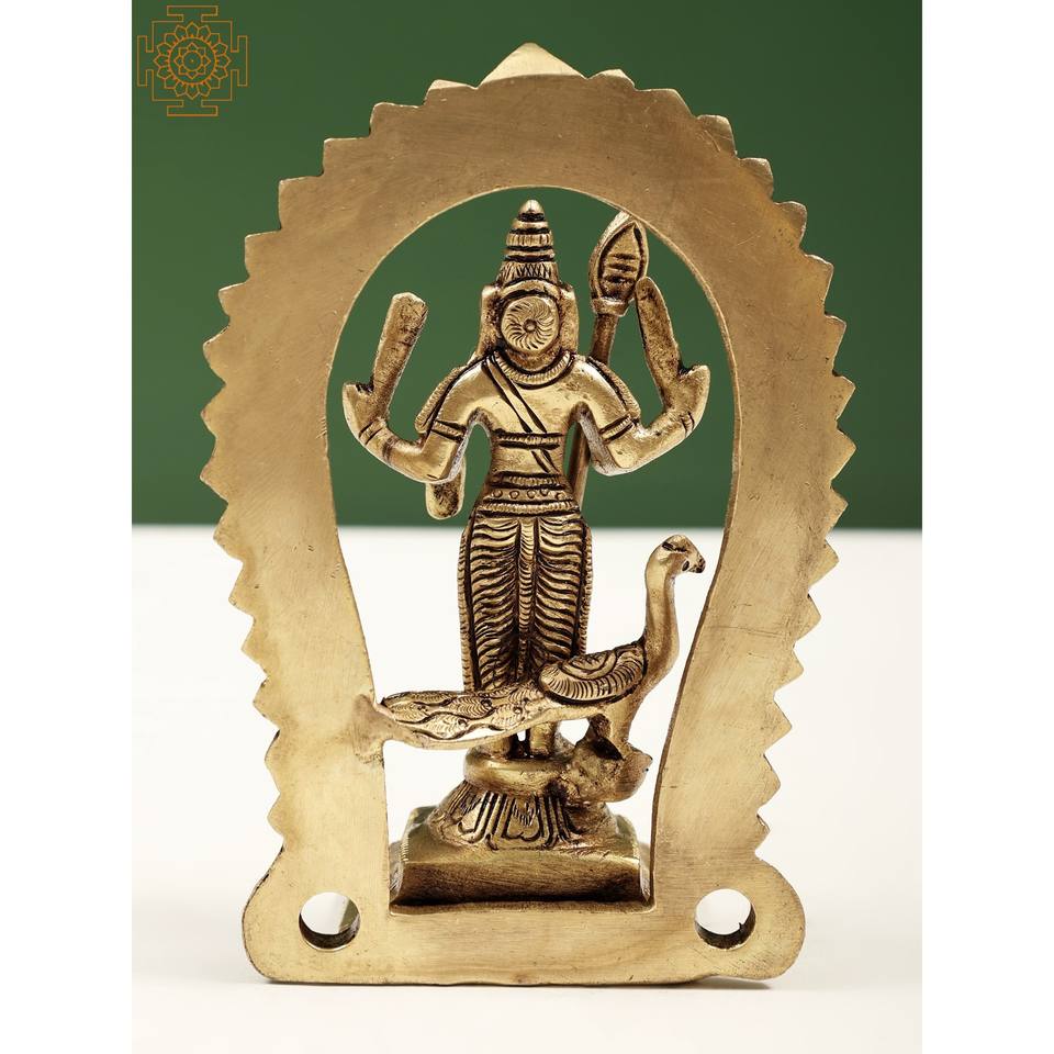 Sculpture en laiton de 5 pouces faite à la main de petites statues de divinités Kartikeya et Murugan