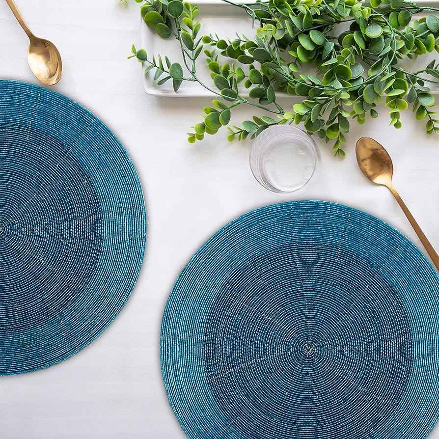 Napperon de table perlé argent et or de 5 pouces fait à la main ensemble thé Occasion motif ovale tapis de séchage tampons en verre ardoise matériel