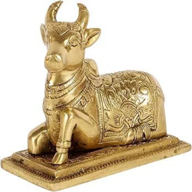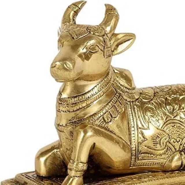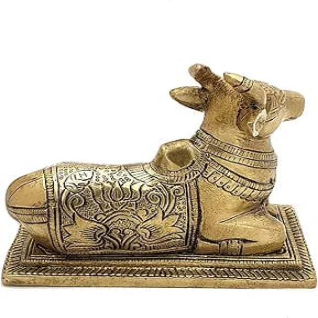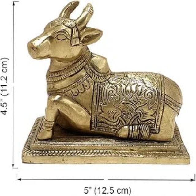 Fait à la main 5 pouces en laiton Nandi vache idole Lotus gravé Art déco Design pour mariage/anniversaire maison/Temple Standard Statue Pack de 1