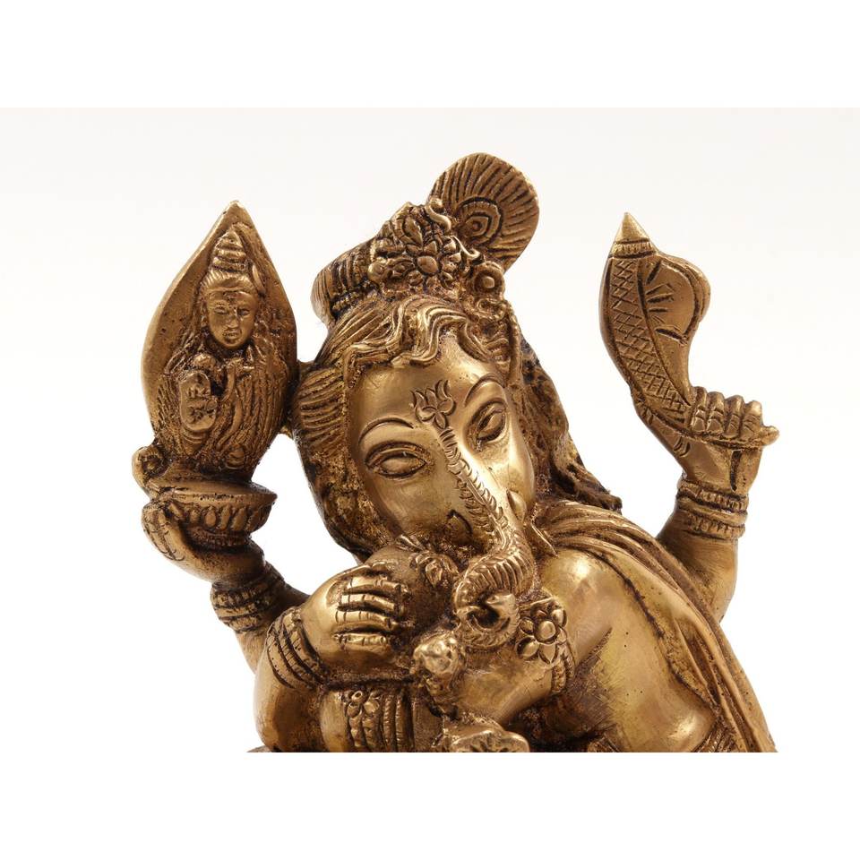 Fait à la main en laiton de 6 pouces seigneur Ganesha idole seigneur de la sagesse et de la prospérité fabriqué en Inde Lovin à Shivling Sculpture