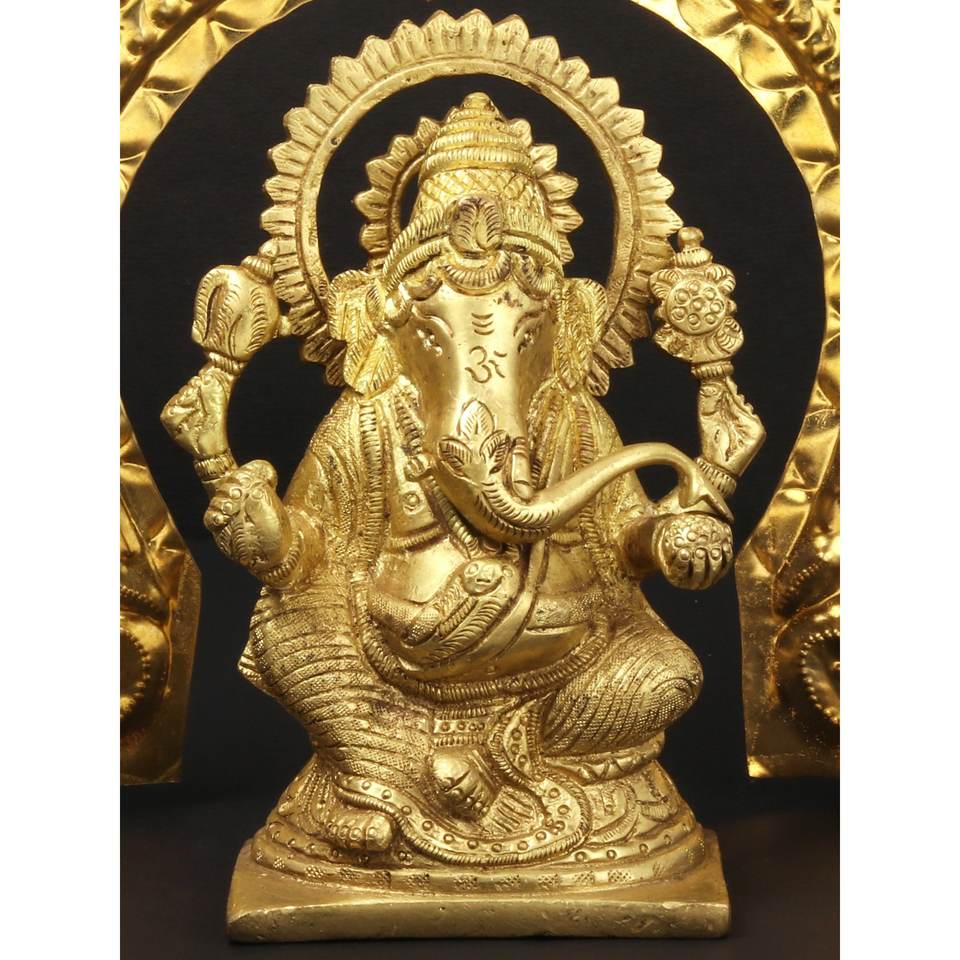 Sculpture Lord Ganesha de 6 pouces faite à la main avec arc (Thiruvatchi) Matériau en laiton Design indien traditionnel pour les cadeaux